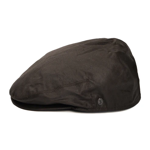 The Oilcloth Flat Cap in brown is a perennial favourite due to it being a water resistant stylish flat cap made from cotton. For comfort this cap features a grosgrain sweatband and a satin lining. A Jaxon & James pin can be found on the left and the brim is secured with a single snap. This cap is perfect for a rainy day in the U.K.