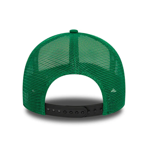 This A-Frame Boston Celtics Trucker Cap in off-white-black-green by New Era is called the NBA Graphic. It features the team name and logo printed on the front. The New Era flag is embroidered on the left side. As the cap is an A-Frame, it comes with an slightly higher front to the crown. The mesh back features an adjustable strap to ensure a great fit.