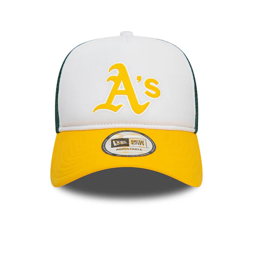 Oakland Athletics A-Frame Trucker Cap – MLB Logo – White-Yellow-Dark Green