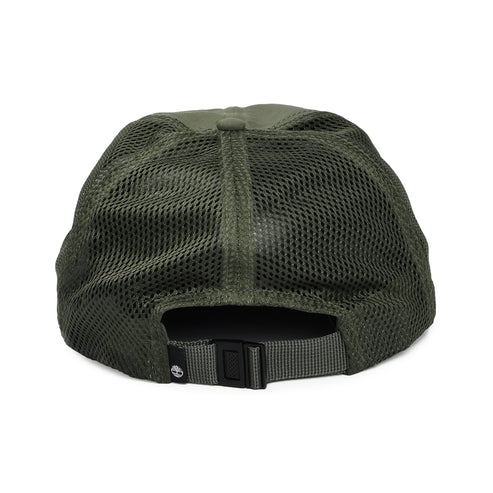 Stay stylish with the Timberland Soft Structured Trucker Cap in olive. Made from 100% recycled nylon ripstop, this trucker cap features a super lightweight unstructured crown. It is finished with a Timberland patch sewn on the front and a Timberland flip tag next to the adjustable strap with release buckle at the back.The cap comes with a branded elasticized anti-microbial sweatband for odour control.